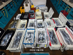 9월30일(화.1물) 갈치조황입니다.조사님들 모시고 출조다녀왔습니다.99.5% 갈치만 물어주니이런 행운이0.5%는 오징어, 고등어입니다. 사이즈는3지반 4지 4지반 5지~~ ㅎㄷㄷ합니다.찬바람불면 대치나온다는 말을실감하는 하루였습니다. 50~ 55메다 시작으로35메다까지 올려서조금은 수월하게 올렸고요. 2시이후로 속도가 떨어져약간의 소강이 찾아오고마릿수가 줄었지만잡으시는 분들은 계속 잡으셨습니다. 모든 조사님들 밤새 대단히 고생많으셨어요.열낚해주셔서 정말 감사드립니다. 밤엔 많이 쌀쌀합니다.겉옷 꼭 챙기시고요~~ 오늘 출조계획있으시면빠르게 예약 부탁드립니다. 전원쿨러조황! *** 삼천포 타고피싱 예약 안내 ***예약문의 : 010-6337-6339오시는길 : 경남 사천시 팔포3길 56-55 (사량도여객선터미널 앞 방파제)홈페이지 : https://tago.sunsang24.com/