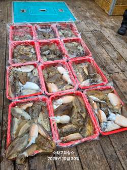 10월25일(토.12물) 갑오징어 조황입니다.조사님들 모시고 출조다녀왔습니다.요기조기 열심히 댕기연서 모았는데요.개인 조과차가 있고사이즈차도 있고 글습니다~더워서 땀이 막~ 나더라고요.소강도 오고퍽퍽 연타고 오고긴시간대단히 고생많으셨습니다.순위변동은 없습니다.내일이 이번주 마지막날이네요~ 내일 오시는분들 행운이 가득하시길 바랍니다. *** 삼천포 타고피싱 예약 안내 ***예약문의 : 010-6337-6339오시는길 : 경남 사천시 팔포3길 56-55 (사량도여객선터미널 앞 방파제)홈페이지 : https://tago.sunsang24.com/