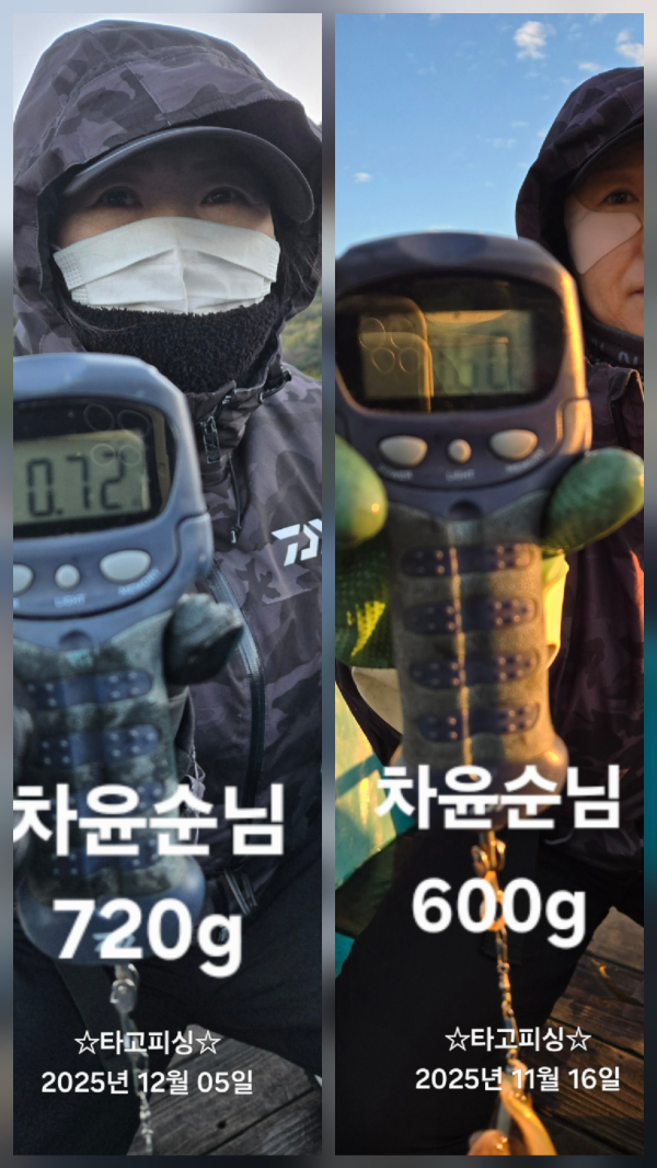 ![]() 12월5일(금.8물) 갑오징어 조황입니다. 조사님들과 오붓하게 대포갑이 잡으러 다녀왔습니다. 며칠 찬바람 불고해서 걱정이 많았는데 좀 물어주네요. 사이즈가 메가 울트라급이라 감탄사가 절로 나오네요. 모두모두 추운 날씨에 고생많으셨습니다. 순위변동 있습니다! 장원 15수 정원백님 축하드립니다. 이제 갑오징 출조 이틀 남았네요. "끝날 때까지 끝난게 아니다!" 출조하시는 모든 분들의 행운을 빕니다. 봉돌은 최대30호까지 준비해주시고 옷 따숩게 입고 오세요^^ ![]() ![]() ![]() ![]() ![]() ![]() ![]() ![]() ![]() ![]() ![]() ![]() ![]() ![]() *** 삼천포 타고피싱 예약 안내 *** 예약문의 : 010-6337-6339 오시는길 : 경남 사천시 팔포3길 56-55 (사량도여객선터미널 앞 방파제) 홈페이지 : https://tago.sunsang24.com/ ![]() |